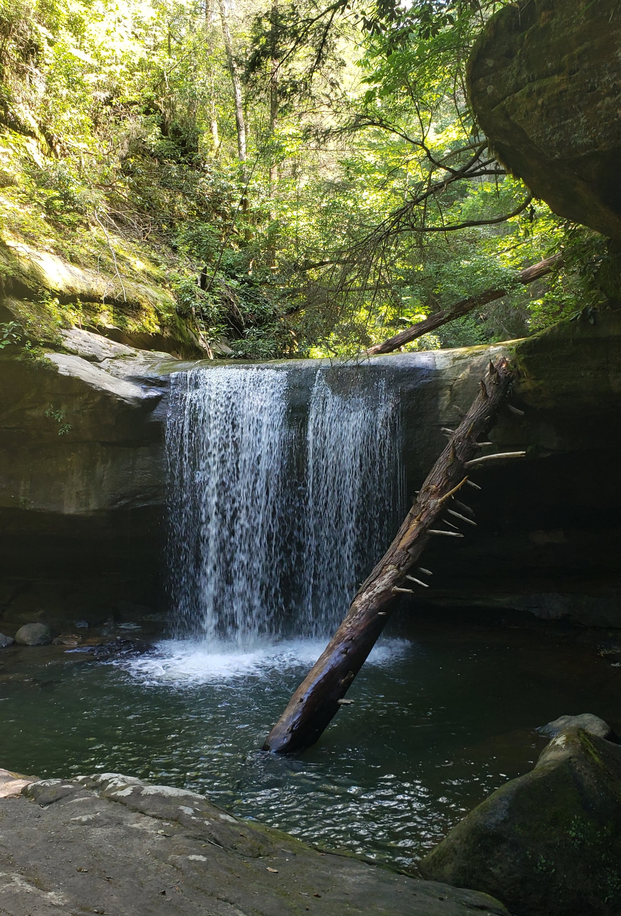 The 4th of July holiday came on the heels of Dr. Anthony Fauci’s dire prediction that we might reach 100,000 new daily COVID-19 cases unless swift action was taken. Rather than dissuading me from traveling, this very worrisome trend convinced me it was now or never. Under that context, I judged a return to Cumberland Falls might be our first, and only, chance to escape together on a hiking trip any time soon. To be honest, I was going a little stir crazy too after being stuck at home for more than 3 months. Although the daily tally of new COVID cases peaked at a “mere” 70,000, it seems like that was the right decision since we will soon pass the horrific benchmark of 200,000 COVID fatalities.