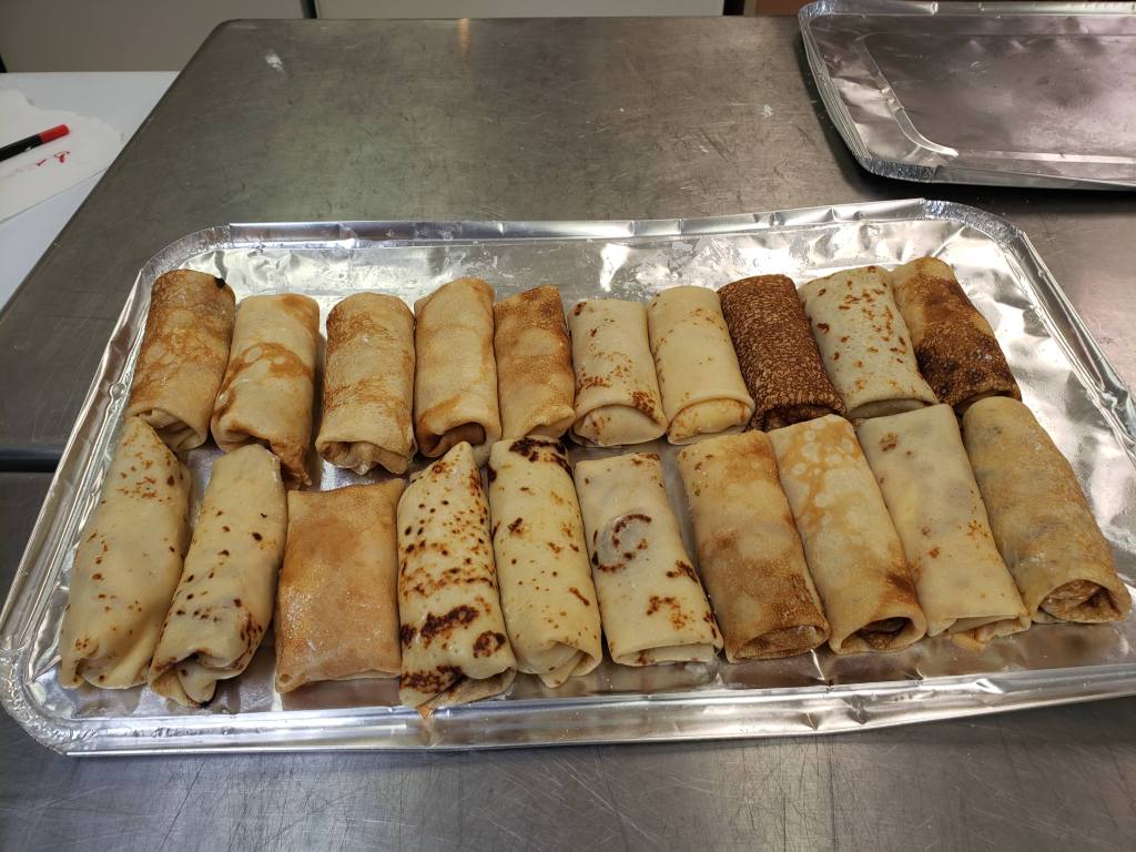 The menu included: grilled kebabs (sashlik), beet soup (borscht), stuffed cabbage rolls (holubtsi), dumplings stuffed with potatoes (varenyky also called pierogis), cheese crepes (nalesniki), and many other tasty treats! The preparations began weeks earlier, and Nataliya and I helped bake pierogis and nalesniki. The nalesniki were filled with lemon flavored cottage cheese which was delicious! Numerous desserts were also available.