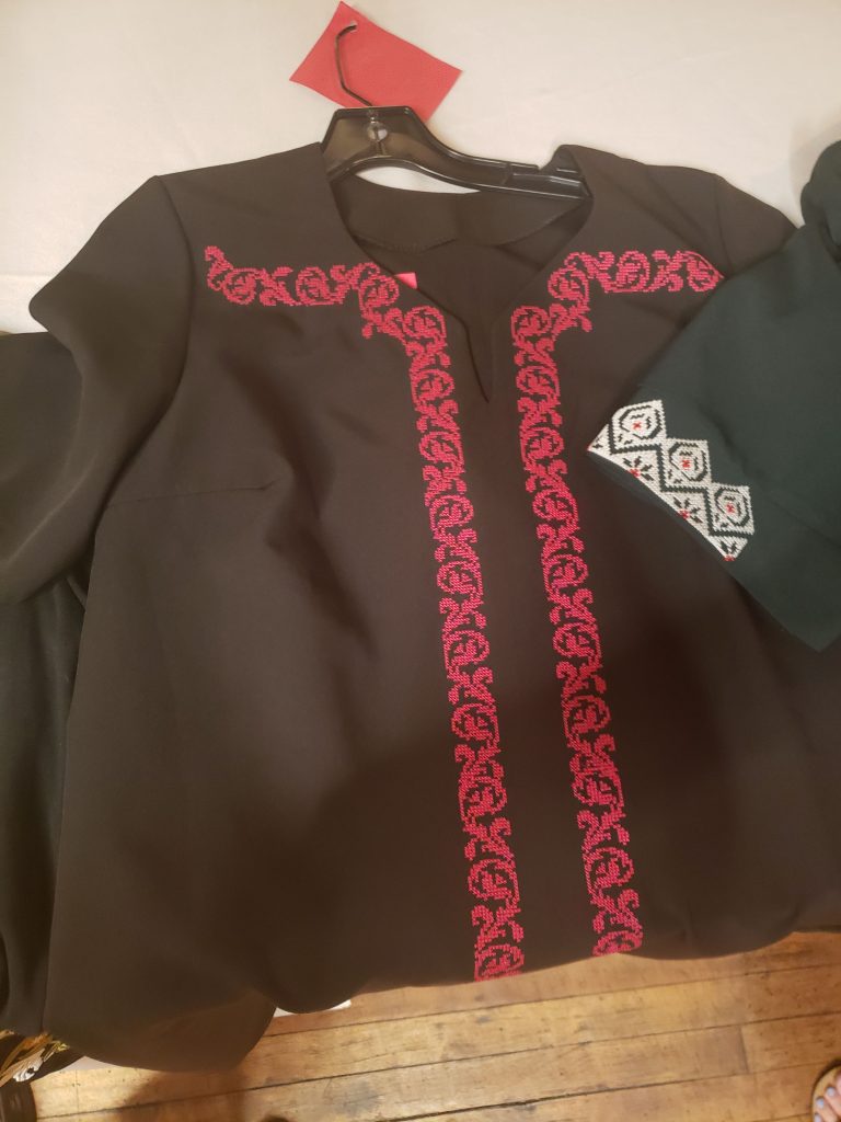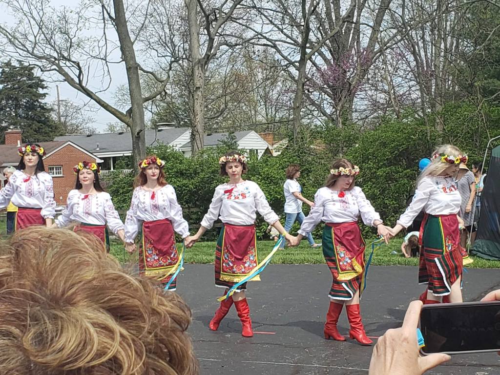 In addition, there have been several other successful local events that benefitted Ukraine, including a banquet and auction at the Woodward theater in Over-the-Rhine. Several dozen attended the event in June, which raised more than $14,000 for the charity Razom which provides humanitarian aid. The menu featured traditional Ukrainian dishes including borscht (stew), varenyky (pierogi/dumplings), and banyky (stuffed rolls). The event also included a silent auction and Nataliya and I won tickets to the Museum Center. However, the fashion show featuring traditional Ukrainian vyshyvanka (embroidered shirts) was the highlight of the fundraiser. Nataliya has been embroidering her own example, which is beautiful, but the event showcased dozens of examples that were also very intricate. The vyshyvanka at the fundraiser were also auctioned off to the highest bidder and Nataliya got one at a very nice price.